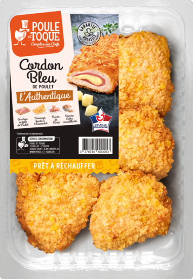 A la poêle : sortez les cordons bleu de la barquette. Laissez cuire 22 minutes à feu moyen avec le couvercle et retournez le produit à mi cuisson.