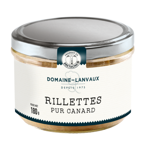 Les rillettes sont réalisées avec une recette pur canard, de grande qualité. La cuisson douce et lente en marmite garantie une texture moelleuse et un goût délicat. Une recette 100% canard savoureuse et gourmande !