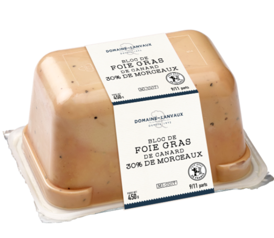 Un Foie Gras de canard Origine France avec une recette fondante et savoureuse résultant d’une émulsion de Foie Gras assaisonné et de morceaux représentant au minimum 30% du poids total du produit. Une présentation en terrine permettant un démoulage et un tranchage facilité. 9/11 parts