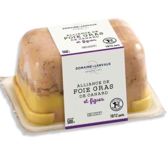 Un Foie Gras de canard Origine France alliant une texture ferme et la figue. Une tranche généreuse pour ce format 500g. 9/10 parts