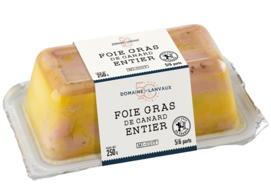 Un Foie Gras Origine France avec une recette de Foie Gras entier au Côteaux du Layon et Poivre Noir pour un goût rond et intense. 5/6 parts